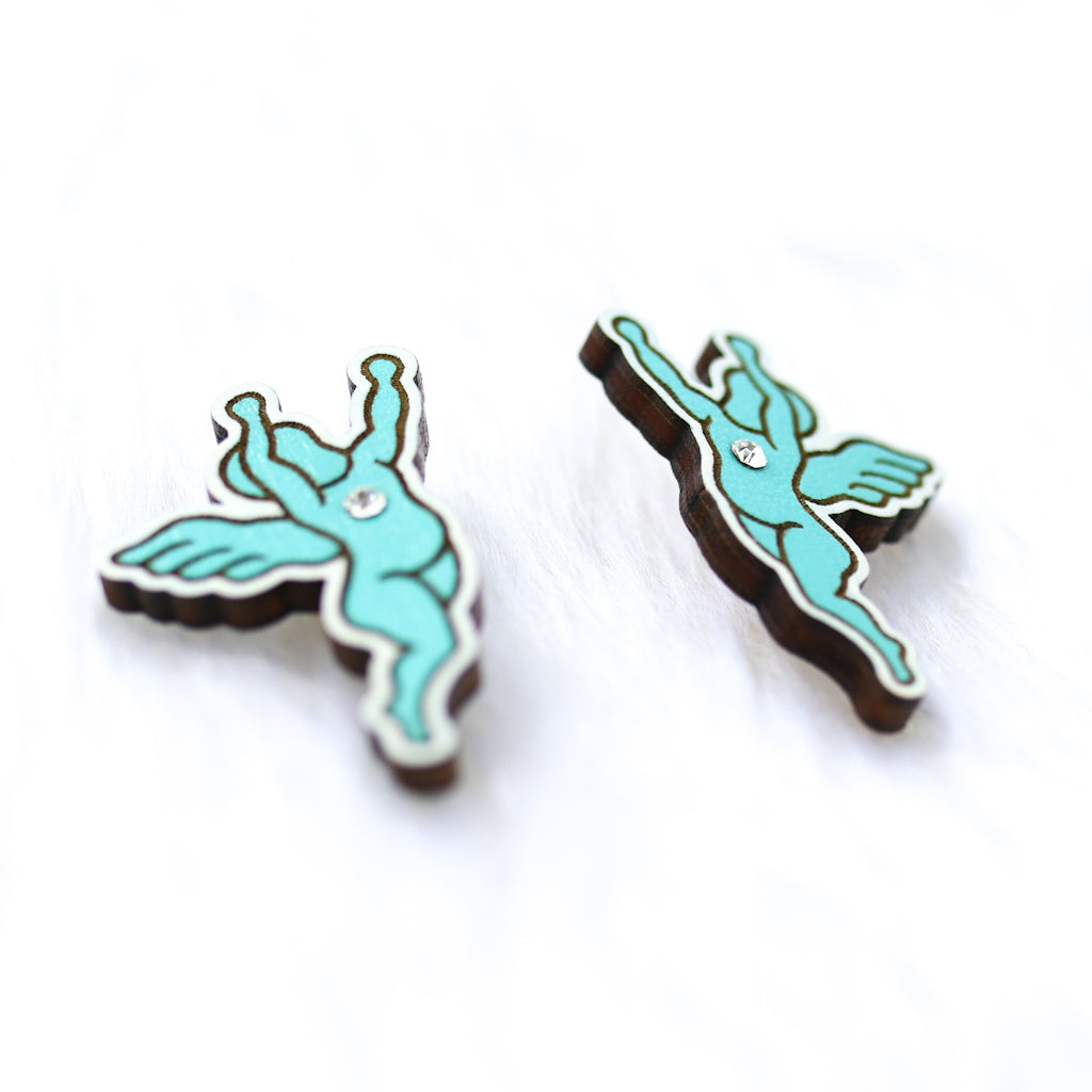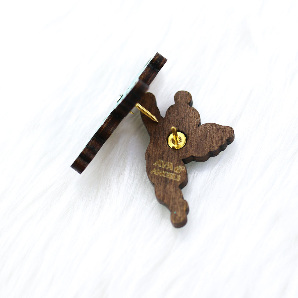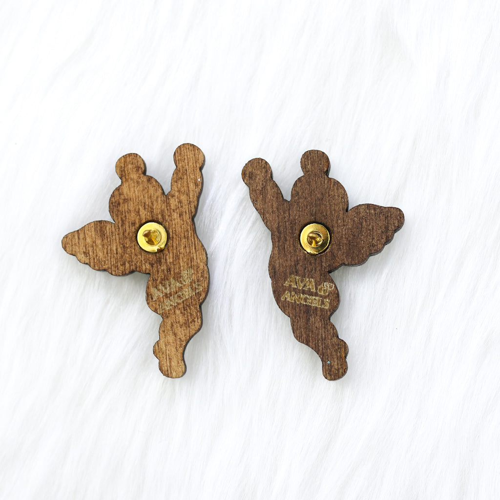 This pair of wooden angel pins is a sweet, delicate accessory designed to add a soft touch of charm to your jacket, bag, planner, or pin board. Each pin is laser cut and laser engraved from lightweight wood, then hand-painted with care for a soft, calming finish.