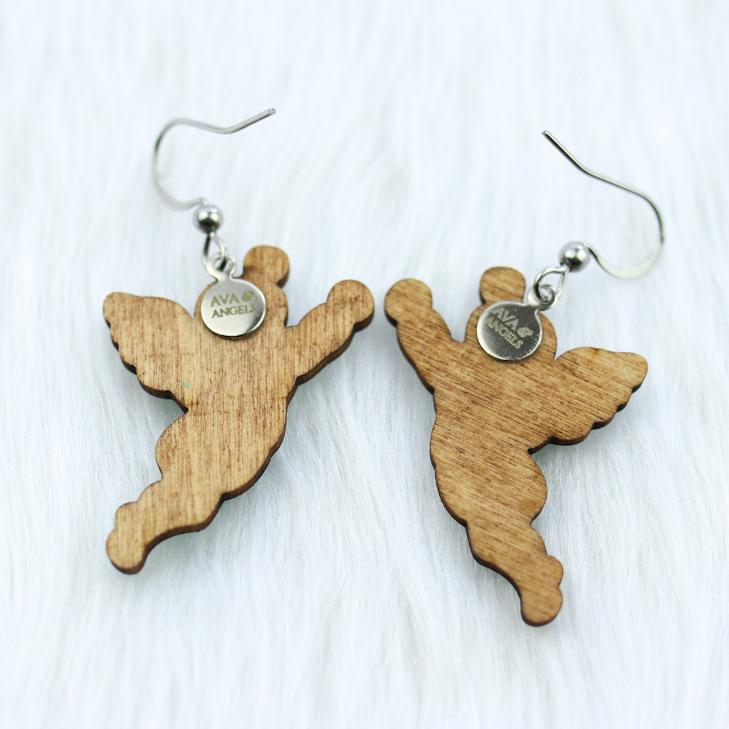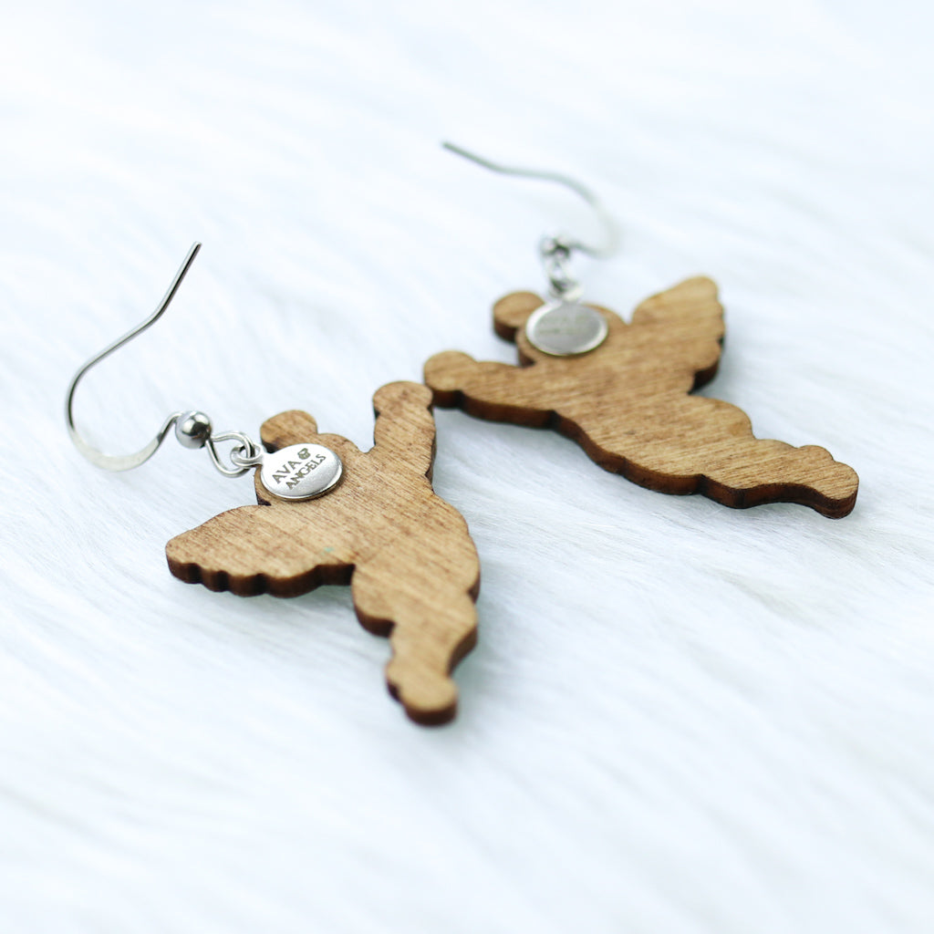 Wooden Angel Earrings Silver Hooks