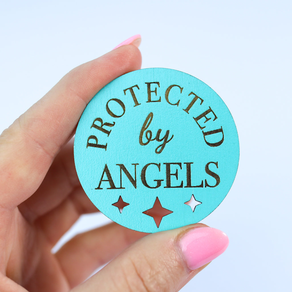 This circular wooden magnet is laser cut, laser engraved, and hand painted in soft, calming tones to match the rest of the collection.