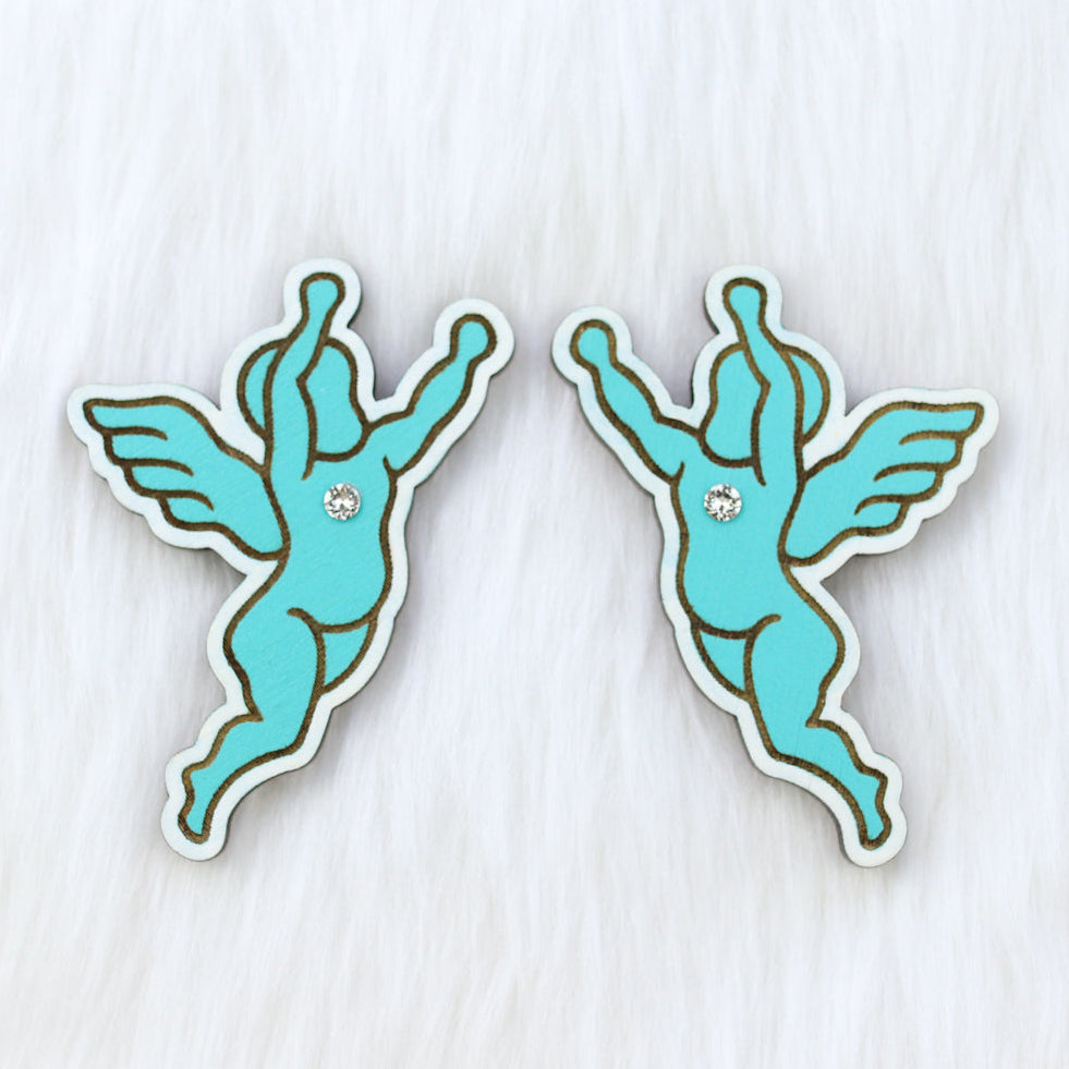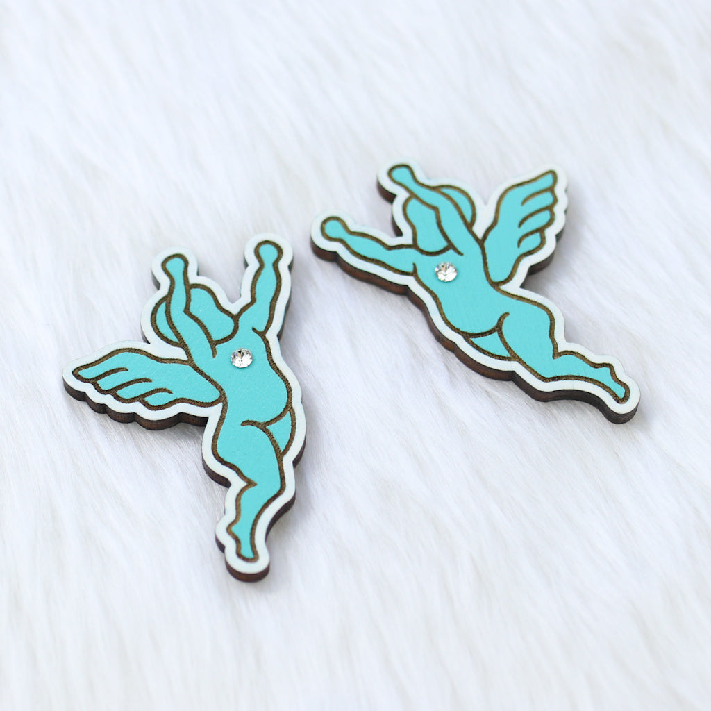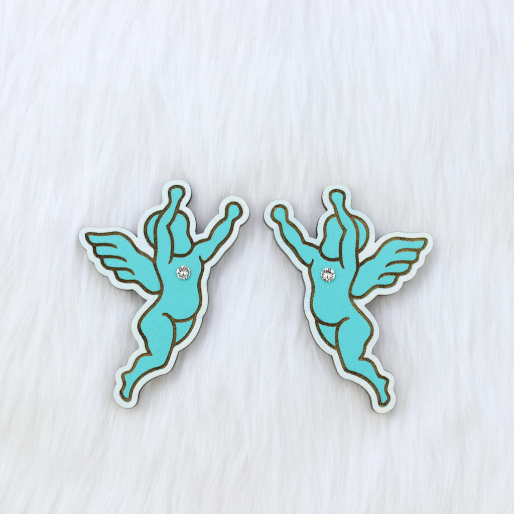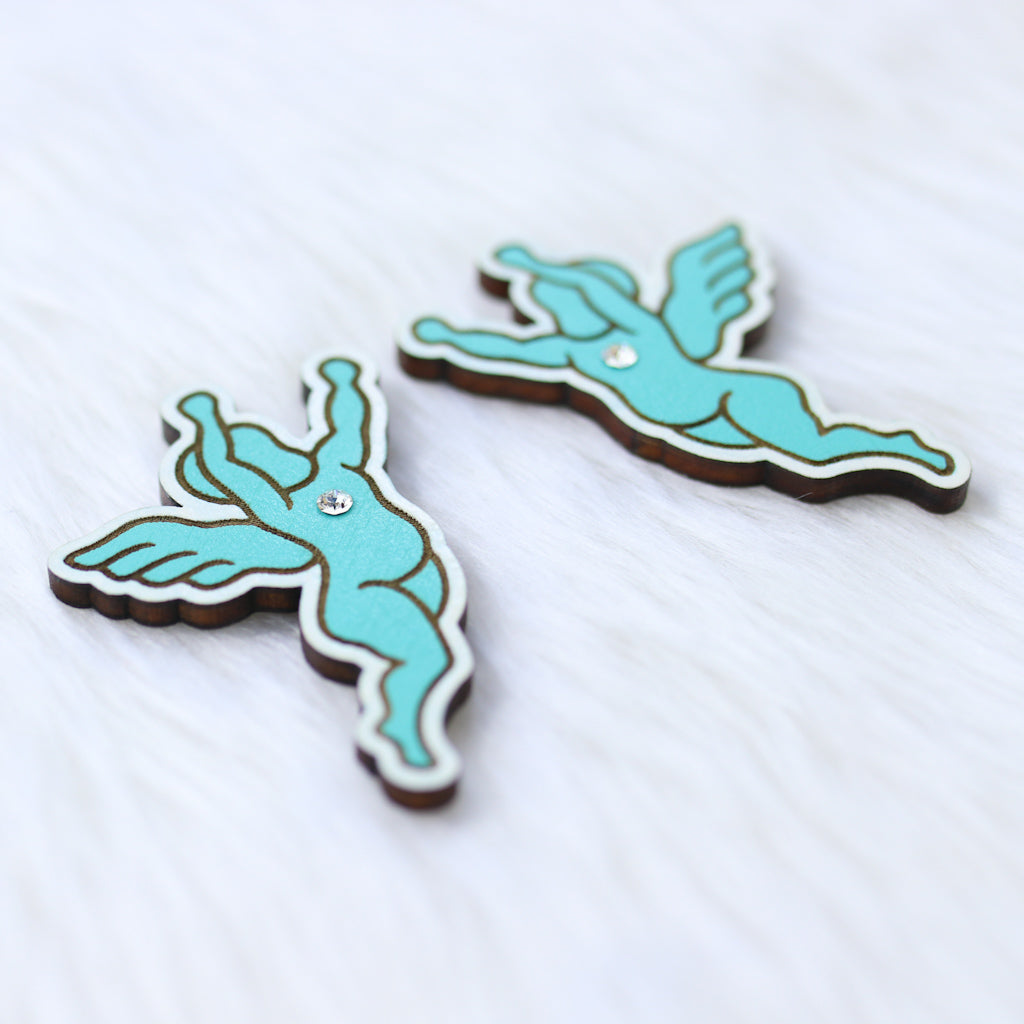 This pair of wooden angel magnets is a sweet and gentle addition to any fridge, memo board, or workspace. Each angel is laser cut from birch plywood, laser engraved for detail, and hand painted in soft, calming colours that match the rest of the collection. A small crystal rhinestone is placed in the centre of each angel’s chest, adding a subtle sparkle when the light catches it.