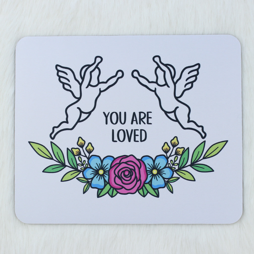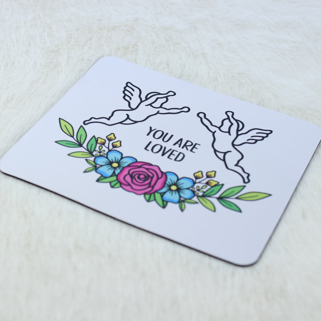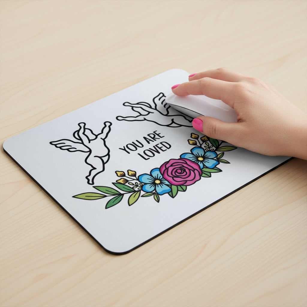 Bring a touch of calm to your workspace with this soft foam mouse mat featuring a colourful celestial design on a clean white base. The gentle message you are loved offers a small moment of reassurance whenever you glance at it.