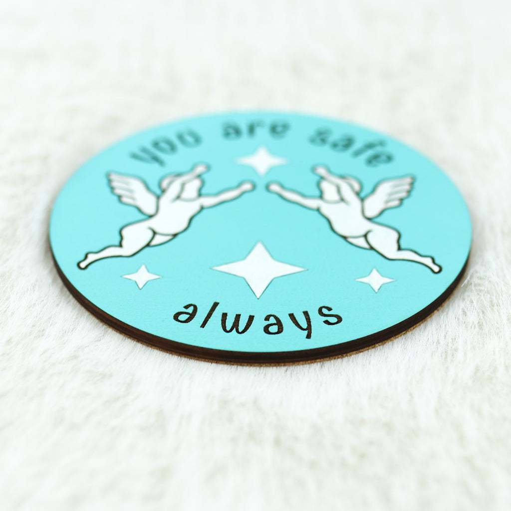 Designed as a small moment of comfort for your home, this coaster is part of the Protected by Angels collection — a gentle reminder you can reach for throughout your day.